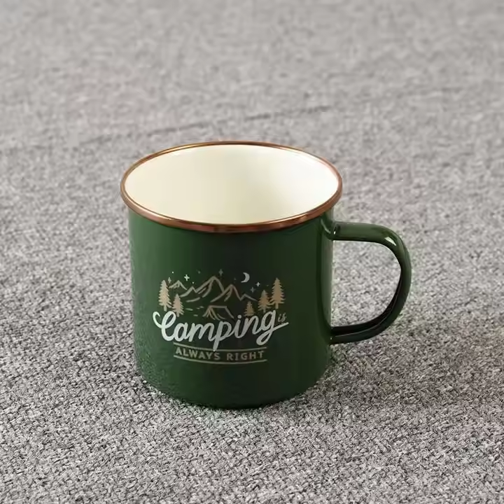 12oz 16oz 20oz Outdoor Adventure Hike Enamelware Custom logo Printing Coffee Beer Drink Enamel Metal Camping Mug with Gold Rim