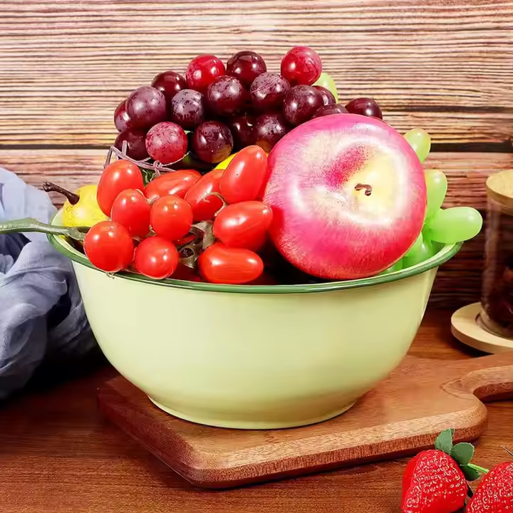 14cm 18cm 22cm Home Hotel Retro Kitchen Soup Enamelware Dinner Custom logo Decorative Fruit Serve Enamel Footed Nesting Bowl Set