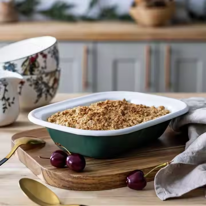 China Custom logo Enamelware Restaurant Kitchen Dinner Enamel Ware Oblong Rectangle square Enamel Pie Dish Plate With Black Rim