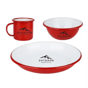 Camping Set Enamel mug, enamel plate, enamel bowl, enamel kettle, coffee pot, fry pan and etc.