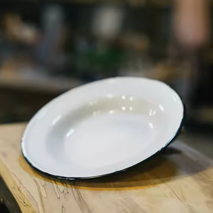 Good Quality Durable White Classic Round Shape Adult Kids Children Food Safety Reusable Metal Enamel Dinner Soup Food Dish Plate