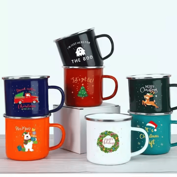 Green Speckled Large Wholesale Cheap Vintage Metal Tea Water Coffee Cup Custom Logo Print Camping Enamel Mug for Christmas Gift