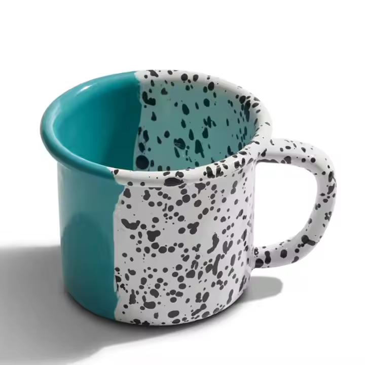 OEM Customized Colored logo Print Decal Enamelled Splash Splatter Splush Enamel Cup Mug for Korea